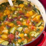 Autumn Minestrone Soup – a healthy minestrone brimming with nutritious, seasonal fall vegetables, tender pasta, and creamy kidney beans.
