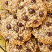 These banana chocolate chip cookies taste a lot like banana bread, but in a soft and slightly chewy cookie form. The great thing about these is that they use about half the butter of a traditional oatmeal cookie thanks to the banana.