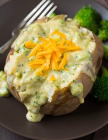 • I recommend eating these baked potatoes right away. If you prep them in advance and them wrap them in foil to keep warm, the steam builds up inside of them and they can become dense.