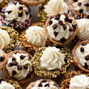 Whether you dip the shells in chocolate or sprinkle these with mini chocolate chips (or chopped chocolate or even chocolate curls), please don’t leave the chocolate out.