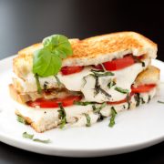 Anything that contains the word “Caprese” in the recipe title, I’m in. I love Caprese entrees and appetizers and I love a hot off the griddle grilled cheese. When the two are combined together you get an intensely delicious sandwich that you won’t easily forget. The juicy tomatoes pair perfectly with the bright and fresh flavor of basil, all wrapped together with melty, stretchy mozzarella? It’s perfect! A drizzle of balsamic glaze or a sprinkle of garlic salt on the bread before grilling can make it even more delicious.