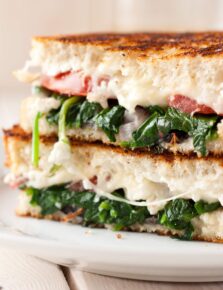 Anything that contains the word “Caprese” in the recipe title, I’m in. I love Caprese entrees and appetizers and I love a hot off the griddle grilled cheese. When the two are combined together you get an intensely delicious sandwich that you won’t easily forget. The juicy tomatoes pair perfectly with the bright and fresh flavor of basil, all wrapped together with melty, stretchy mozzarella? It’s perfect! A drizzle of balsamic glaze or a sprinkle of garlic salt on the bread before grilling can make it even more delicious.