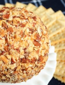 Growing up my mom always made a cheeseball around the holidays and we would polish it off in no time. Not much has changed because now I’m doing the same thing for my family. (This cheese ball also makes our Super Bowl party food list!)