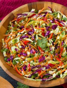 This refreshing Chinese Chicken Salad has such a welcome, satisfying blend of textures paired with well rounded flavor. The dressing has a crave-able rich peanut flavor, the veggies offer the salad so much freshness and a great crunch, and the chicken makes it hearty and filling.
