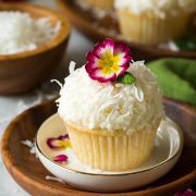 TheseΒ Coconut CupcakesΒ are topped with a creamy coconut buttercream frosting and then sprinkled with shredded coconut. These are incredibly easy to make and are perfect for summer barbecues and potlucks!Β