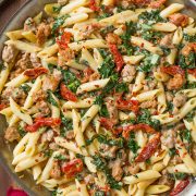 Creamy Kale and Turkey Sausage Pasta with Sun-Dried Tomatoes