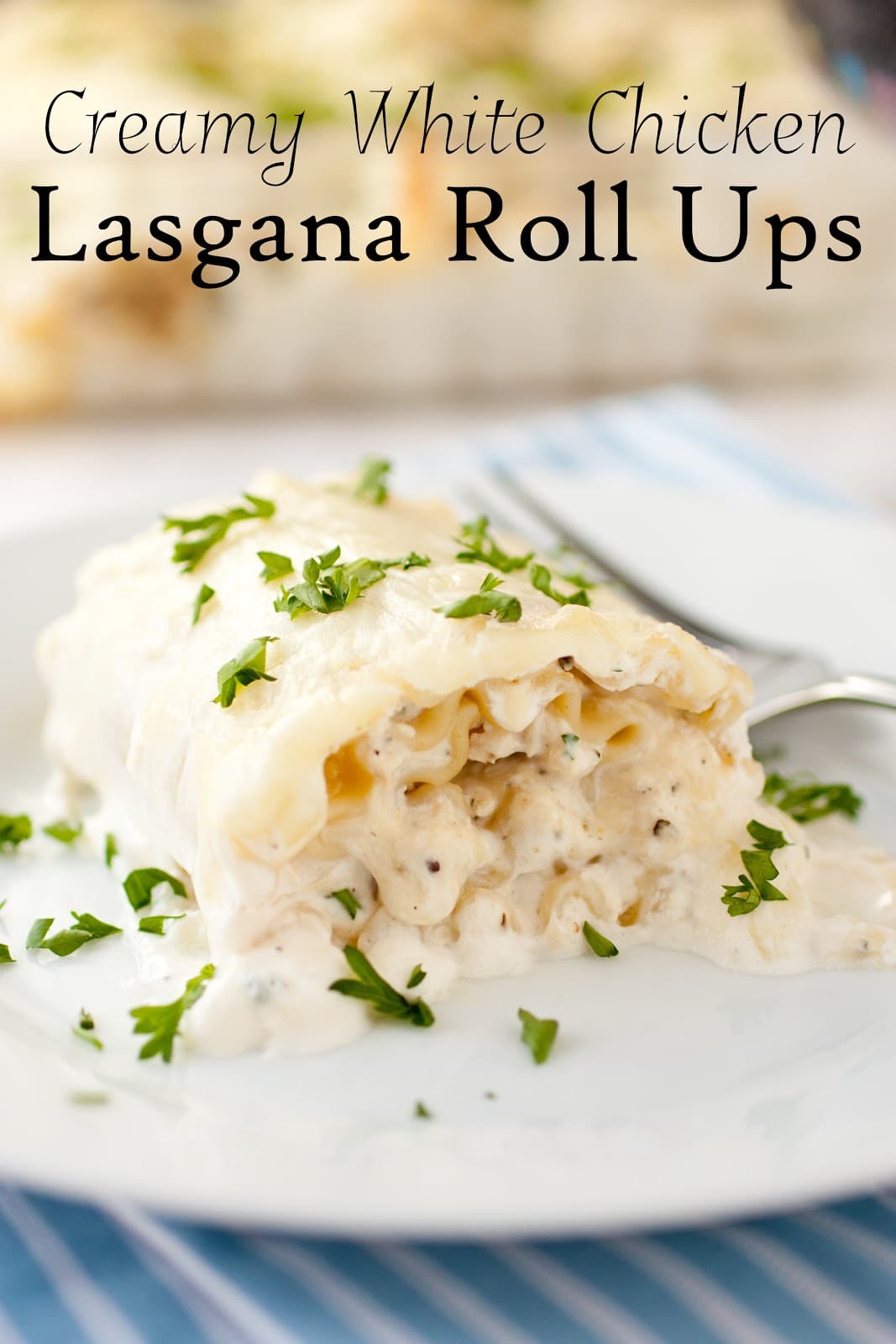 A perfectly hearty lasagna roll studded with chicken and brimming with a rich and creamy white sauce. A dinner the whole family will enjoy!