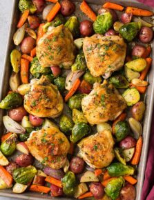 Roasted Chicken Thighs is one of those classic, flavorful dishes you just won’t be able to forget about! You get tender juicy thighs, crispy skin and that garlicy herb pan sauce is so deliciously tasty! It is one of the best chicken dishes I’ve had, so I’m guessing you’ll want this one on repeat.
