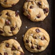These cookies, however, are soft, chewy and moist (in a non-greasy way). They have a great structure (as in they don’t deflate into nothingness when you take them out of the oven), and their flavor is perfect. And of course, you can always fancify them a bit and add some Maldon Sea Salt or vanilla beans.