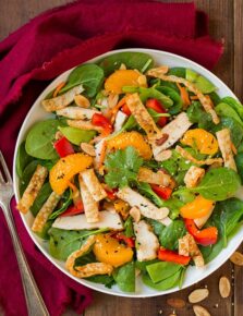 And here we’ve got this incredibly delicious Kale and Orange Salad that has such a delicious Orange-White Balsamic Vinaigrette. Then it’s got the other salad musts – cheese and nuts.