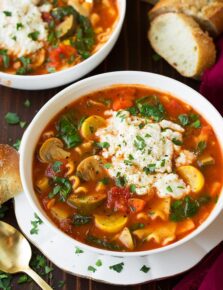 This Lasagna Soup is one of my all time favorites! You get all the flavors of a delicious hearty lasagna in a comforting soup form! It’s loaded with beef, tomatoes and Italian herbs and the melty cheese just takes it over the top.