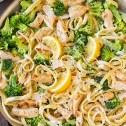 Lemon Fettuccine Alfredo with Grilled Chicken and Broccoli