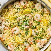 This angel hair pasta recipe was so delicious that it has finally changed my opinion on shrimp! I think the key for me is that I can’t eat cold shrimp. It needs to be warm, and I really liked what a bit of citrus did for its flavor.