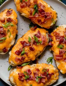 And they have plenty of flavor thanks to their blend of seasonings, the cheesy parmesan, and the boost in golden brown color from pan frying which adds more depth. Plus if you polish them off with a light drizzle of sour cream and a garnish of chives (and did someone say bacon?) you get the ultimate finish. These are mouthwatering in every way!
