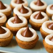 - Immediately remove from oven and gently press 1 Kiss into the marshmallow of each cookie cup. Let rest in baking dish several minutes then remove and enjoy warm or let cool on a wire rack then transfer to an airtight container.