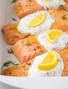 Moroccan Spiced Salmon with Lemon Yogurt Sauce is a quick salmon recipe that everyone will love! It’s jam packed with well seasoned flavor and that sauce just makes it sing. This recipe is proof that easy recipes can still be seriously delicious!