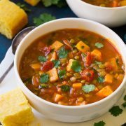 The lentils in it add protein and fiber which make it more filling while the sweet potatoes are a good source of vitamin a – plus they add a delicious, light natural sweetness that blends perfectly with the moroccan spices used in this soup.