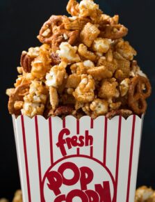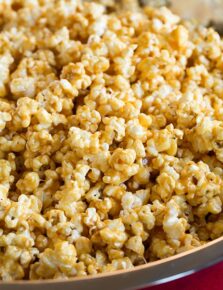 Old Fashioned Pink Popcorn is one of my favorite popcorn recipes because it’s a sweet, crunchy, and delicious memory of childhood. Pink popcorn is a major hit at parties and with little kids—plus you can make it any color you want for any event or holiday!