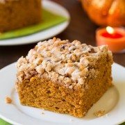 Starting with this Pumpkin Coffee Cake recipe—It is simply dreamy and you will want to savor each and every little crumb. You get an incredibly soft and tender pumpkin cake texture which is enhanced with the perfect amount of spices, and then atop that is a delicious, buttery cinnamon-pecan streusel topping (which you might find yourself stealing off your kids’ pieces when they aren’t looking, don’t tell them I did that), and it’s finished off with a drizzling of creamy vanilla glaze. Is it dessert, breakfast, or a snack? All of the above!