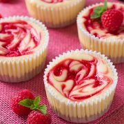 Raspberry Swirled Mini Cheesecakes