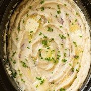 With slow cooker season in full swing, what better to serve on a cold day than these? They’re perfect for a weeknight dinner yet delicious enough to serve at a holiday party and they’re so easy to make! Crock pot mashed potatoes are great for Thanksgiving since they can be cooked without attention while you take care of everything else—and it frees up a spot on your stovetop.