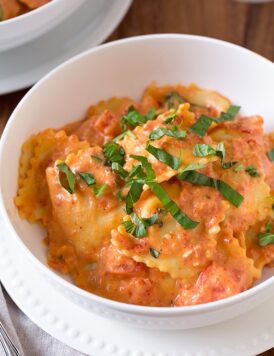 Ravioli with Creamy Sun-dried Tomato and Basil Sauce