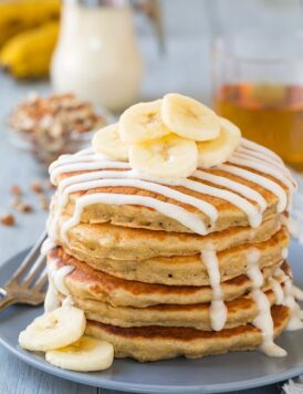 Banana Bread Pancakes with Cream Cheese Glaze