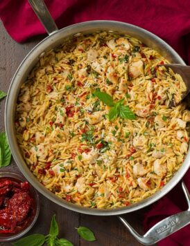 Sun Dried Tomato Basil and Parmesan Orzo with Chicken