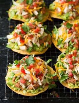 Tostadas {with Chicken Guacamole and Beans}