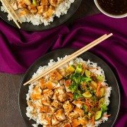 I also love that this recipe doesn’t require any marinating and therefore it comes together pretty quickly, especially if you happen to have leftover rice. Another great thing is that you’ll likely have some left over teriyaki sauce from this recipe to use for grilled chicken, salmon or beef the next day.