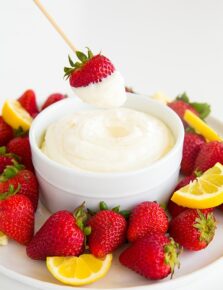 This strawberry fruit dip recipe literally can be made and ready for dipping in 60 seconds. It doesn’t get much easier than that!