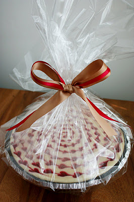 - Slowly ladle remaining cheesecake mixture over the drizzled raspberry sauce, covering all the raspberry sauce (you just don't want it to show through).